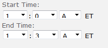 Several users were experiencing a strange issue when viewing a certain InfoPath browser-based form from our intranet using IE9. This form has several drop-downs for a controlled start and end time creation. However, the values seems to be cut off for several people as shown below: